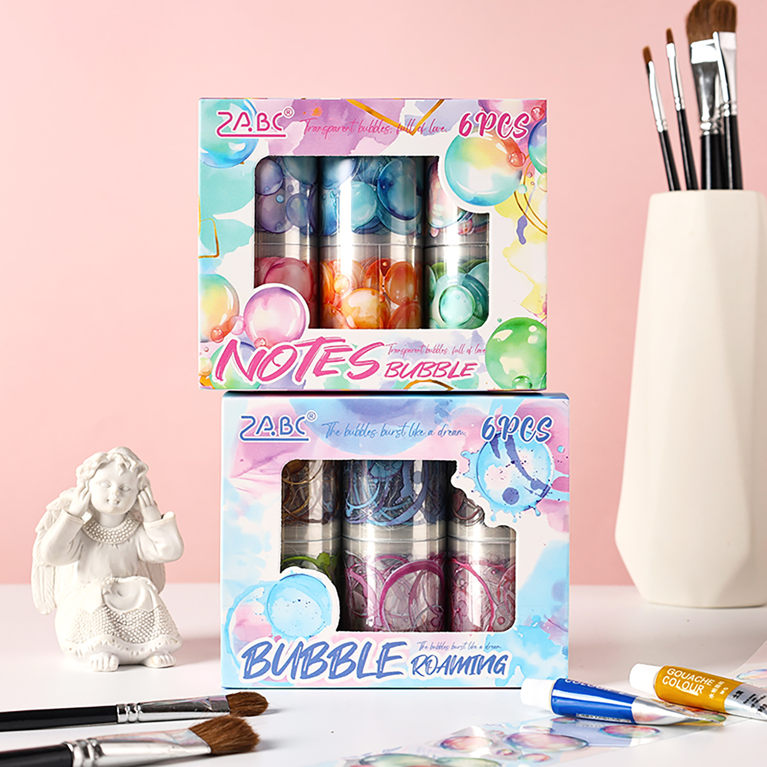 アクアファンタジーバブル透明防水ペットテープセットdiyハンドブック日記ステッカークロスボーダー水彩バブルサークルステッカー