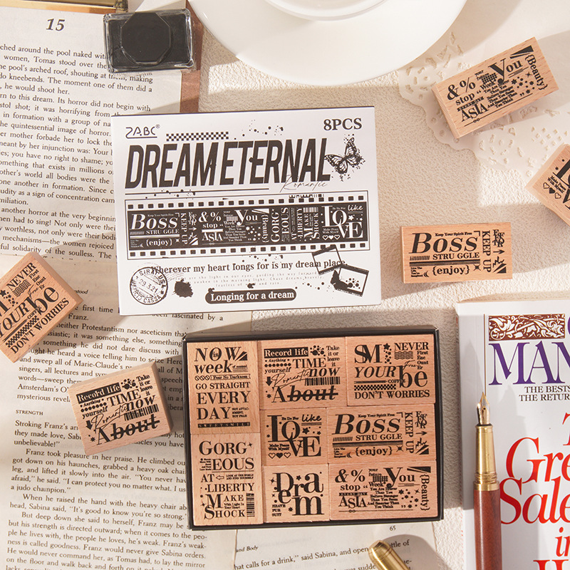Mengyuan 永遠の木製シールセット diy ハンドブック日記印刷スタンプクロスボーダーブナ材レトロ英語シール