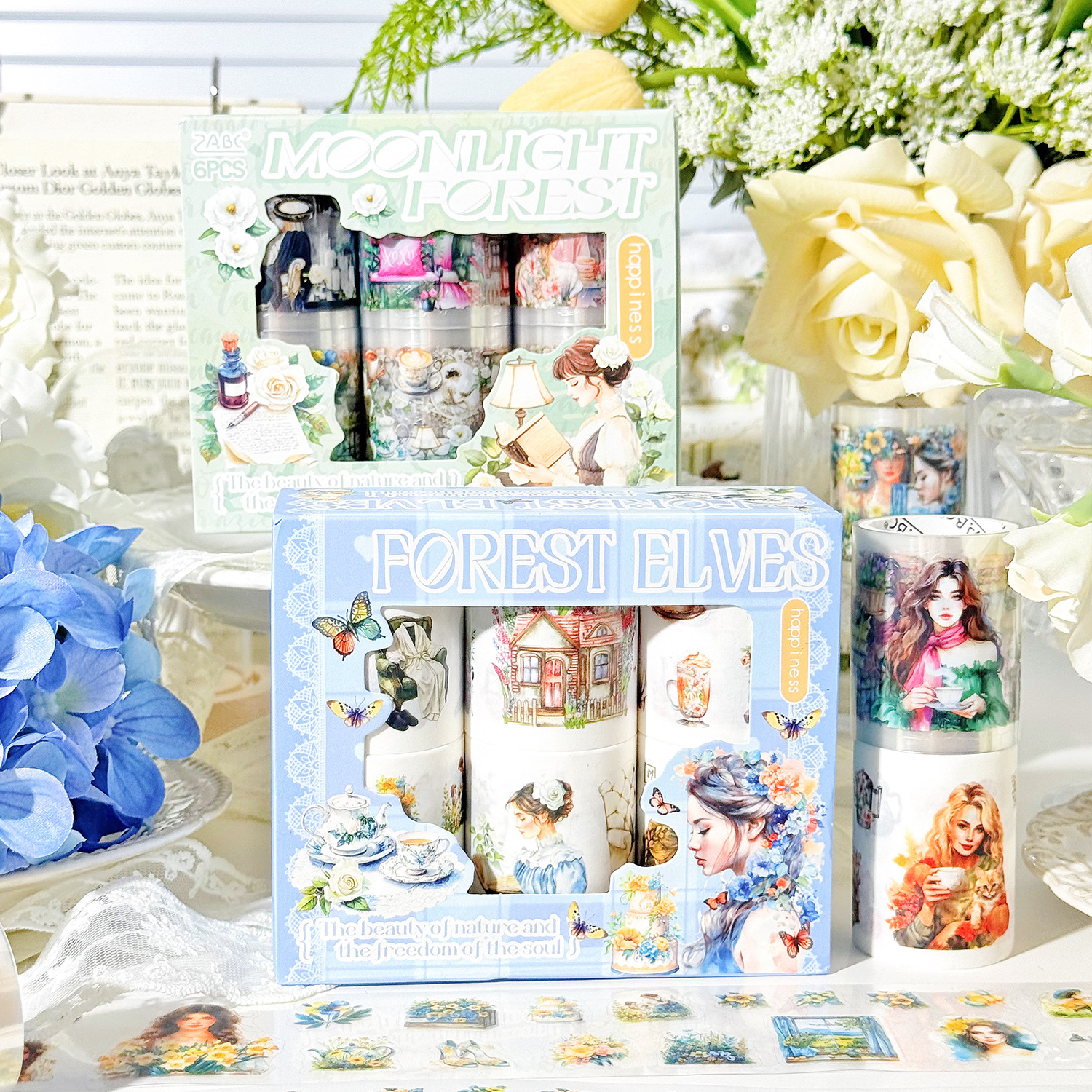 Youdie Fantasy ペット/和紙テープセット DIY ハンドブック日記ステッカークロスボーダーレトロガール花と植物ステッカー