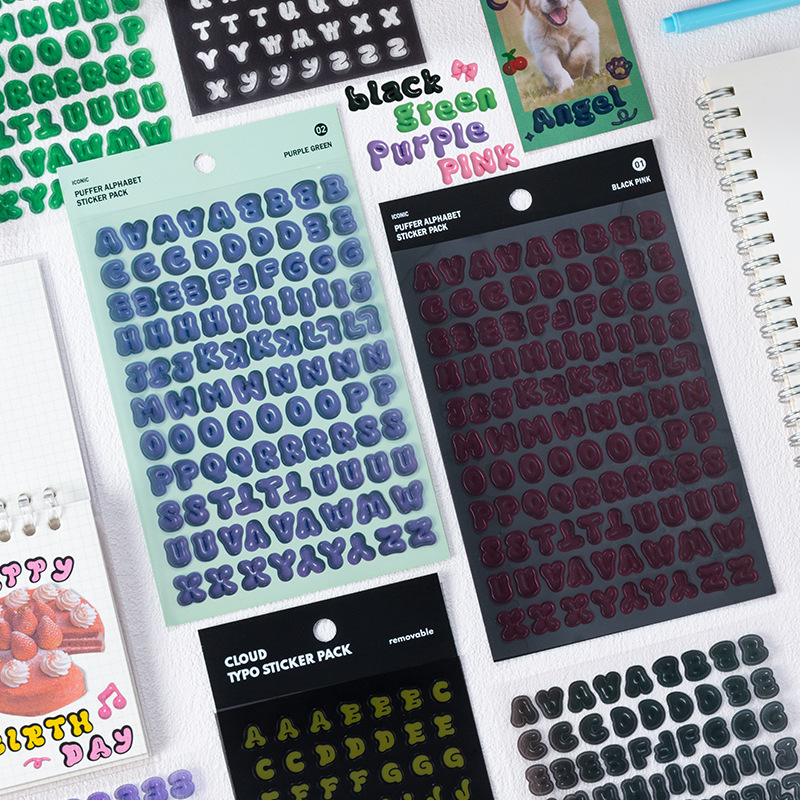 虹雲アルファベットステッカー漫画透明防水petアルファベットステッカーdiy手帳日記装飾文房具ステッカー