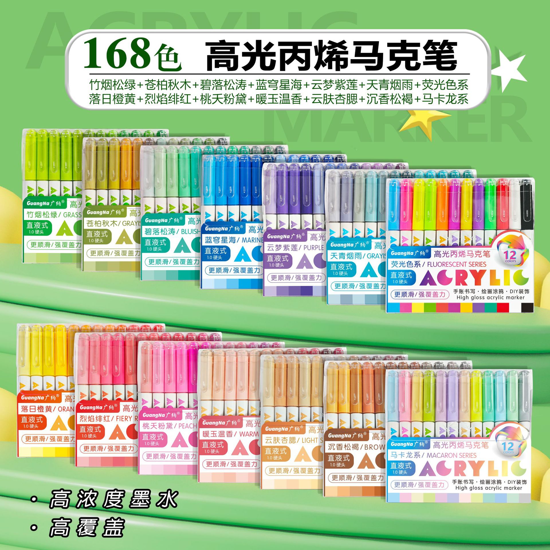 Guangna 586 ハードヘッド大容量高光沢水性ストレート液体アクリルマーカーペン 168 色ハンドブック絵画マーカーペン