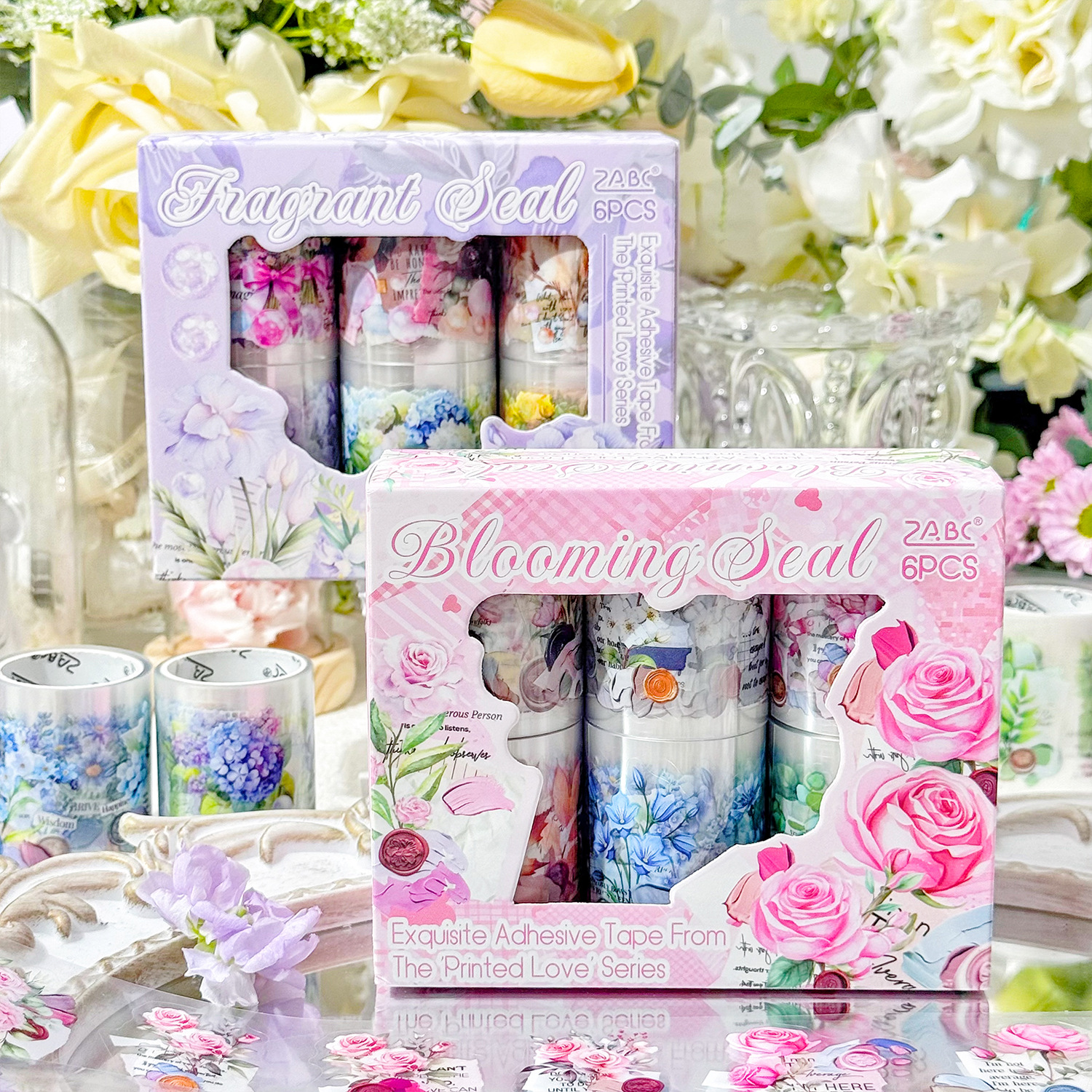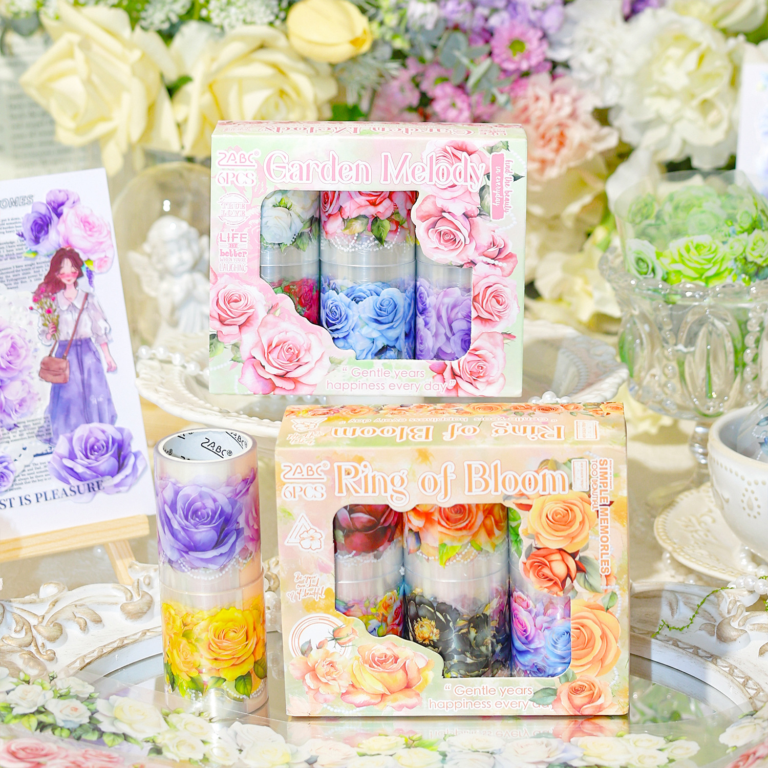 花柄リボン透明防水ペットテープセットボックス diy ハンドブック日記ステッカークロスボーダー新鮮な植物花ステッカー