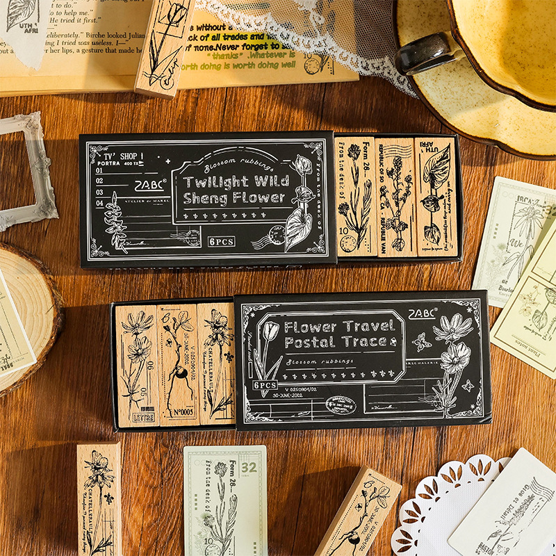 花のロゴ木製シールセット diy ハンドブック日記印刷クロスボーダーレトロ植物花素材シール