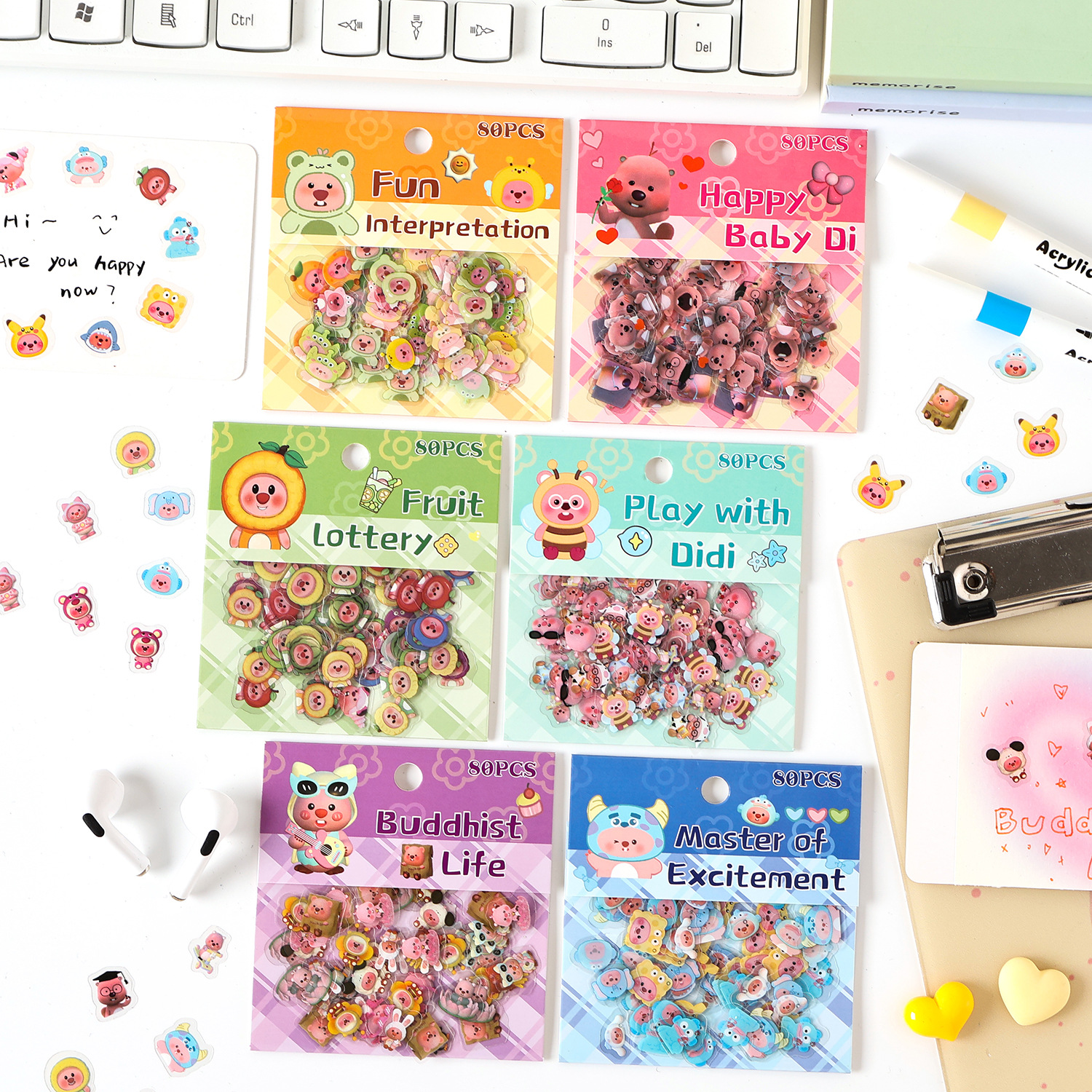 Liangzi Ludi 透明防水ペットステッカーパック小さな鼻ハンドブック日記ステッカークロスボーダー漫画動物ステッカー