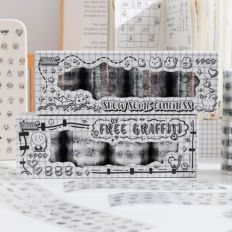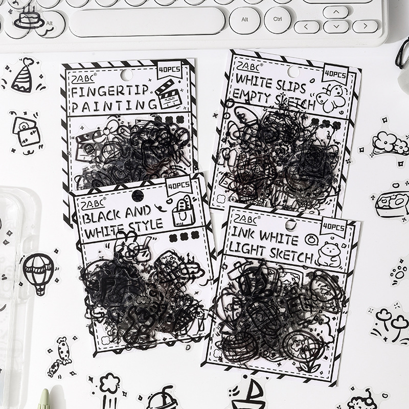 黒調簡絵透明防水petシールバッグdiy手帳日記貼り絵クロスボーダー黒体簡単画シール