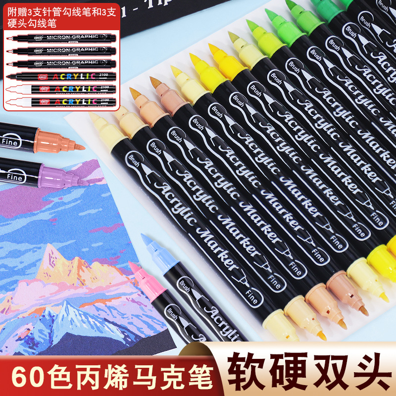 クァンナ612ソフトハードダブルヘッド水性アクリルマグペン60色不透过色折り畳み可能なdiy落书きアートブラシ