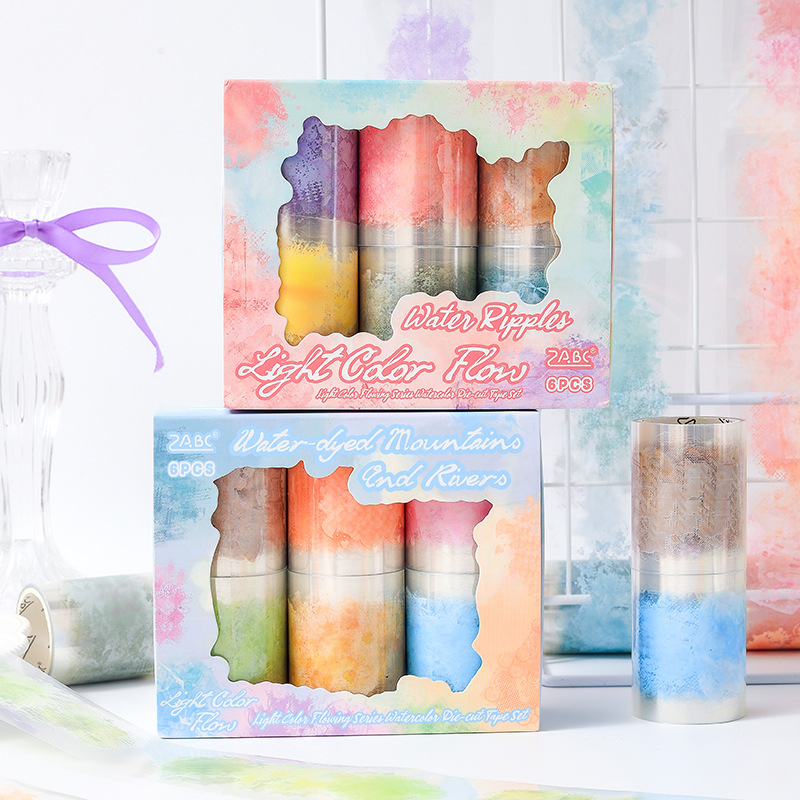 淡い彩流韻透明防水petテープセットdiy手帳造景打底シールクロスボーダー水彩画テープ
