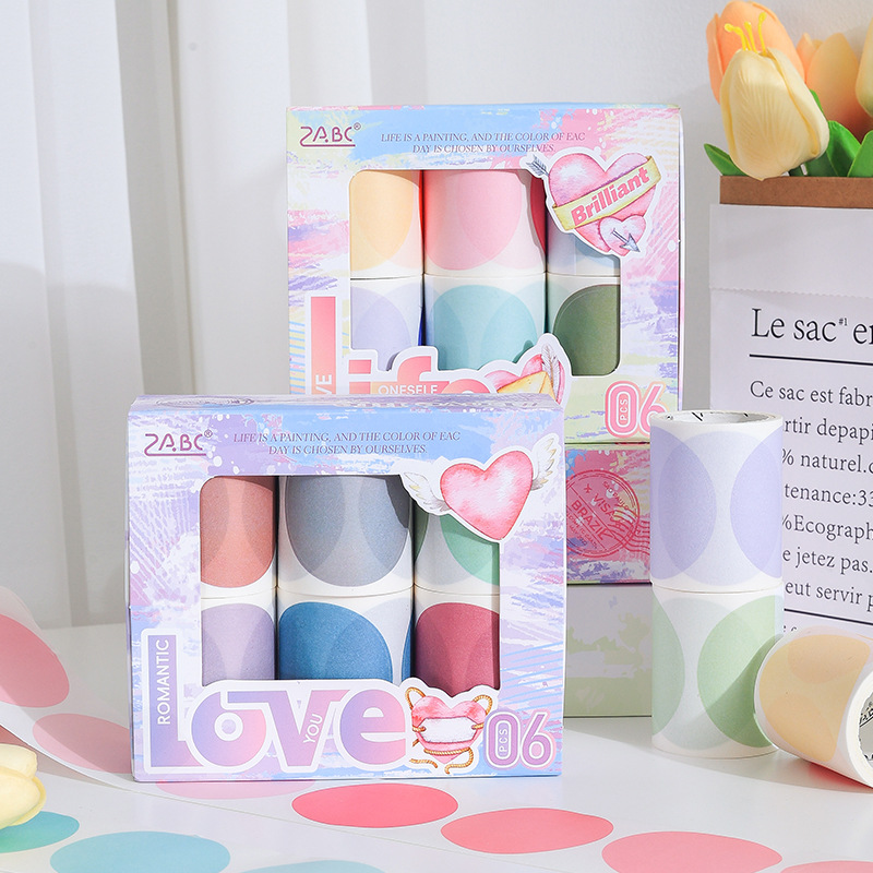 ロマンチックな輝きと紙テープセットのモランディ系の大きな丸い点シールが国境を越えた手帳円形シール