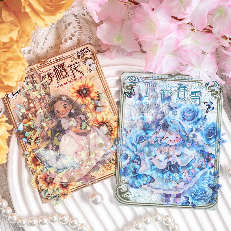 迷蝶少女貝殻光レーザーシールdiy透明防水petシールかわいい女の子文房具手帳シール