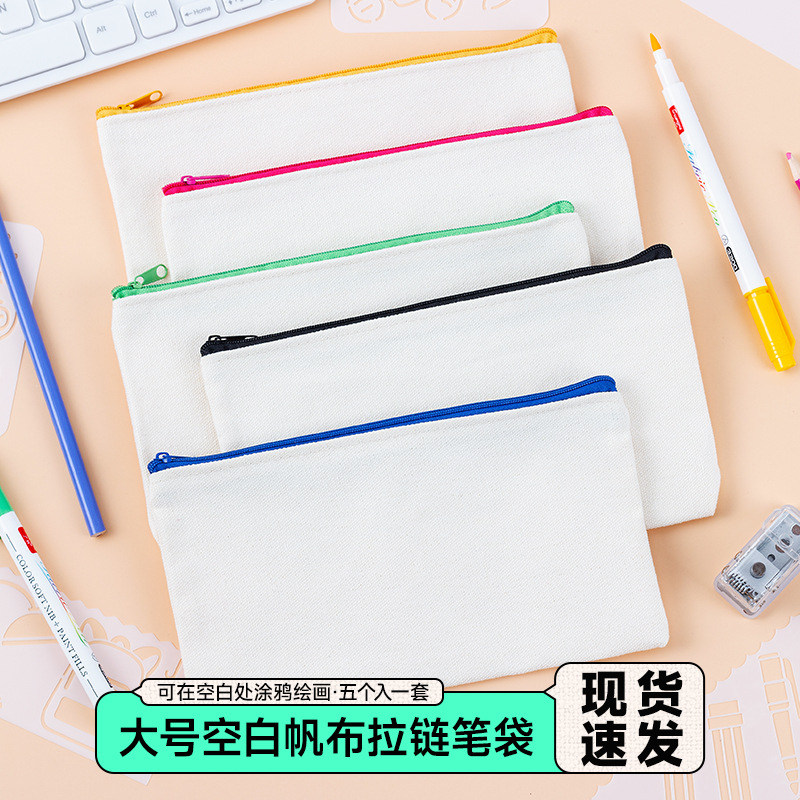 クロスボーダー直供帆布ジッパー筆袋diyシンプルジッパーバッグ化粧バッグ手描き落書き文房具収納