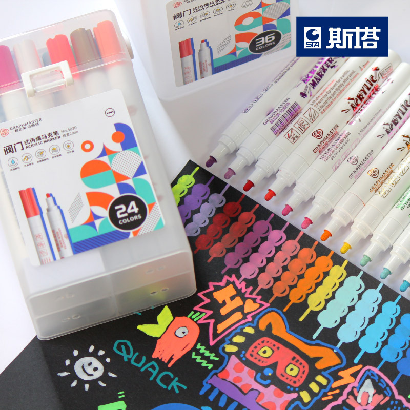 格拉芙马斯特GM5030丙烯马克笔学生款设计防水可叠色无味手提装