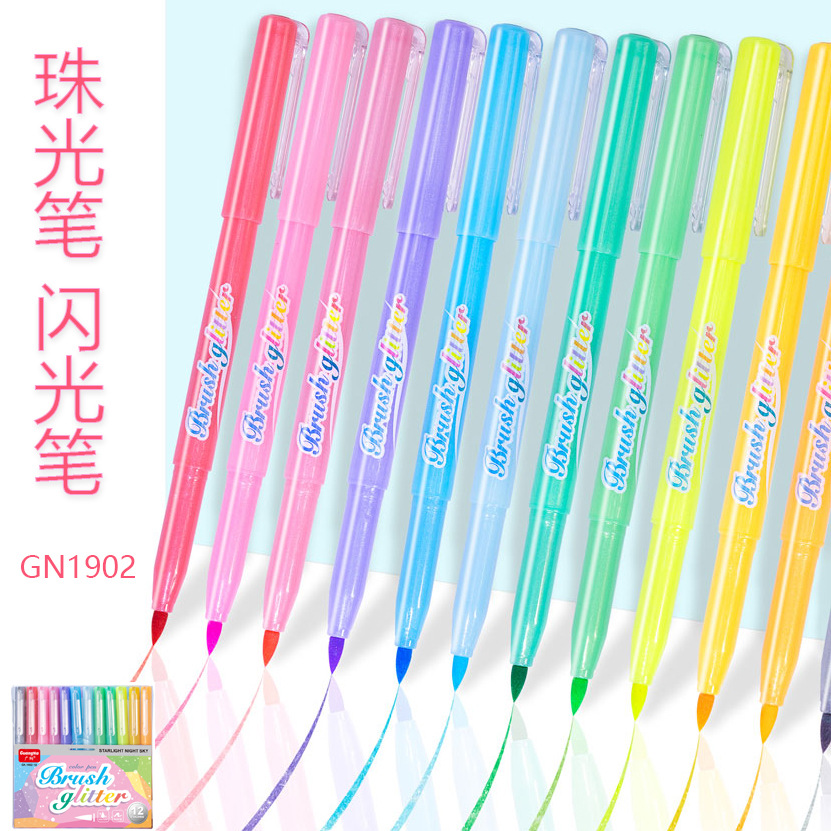 広納gn1902フラッシュ蛍光ペン重点マーカー学生ノートキャンディー色ソフトヘッド落書きペン12色
