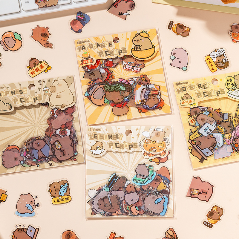 モルモットピカピカ透明防水petステッカーバッグdiy手帳日記装飾素材カピバラ動物ステッカー