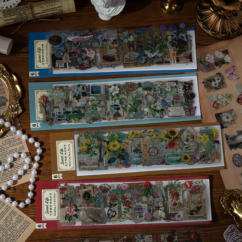 万芳華年透明防水petシールdiy手帳日記復古風装飾素材花卉植物シール