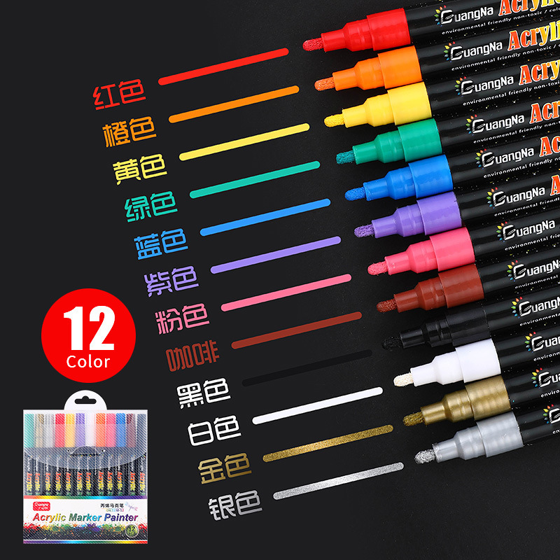 広納アクリルカラーマークペンS130-12色セット2.0mm落書き色絵マーカーdiyブラックカードペン
