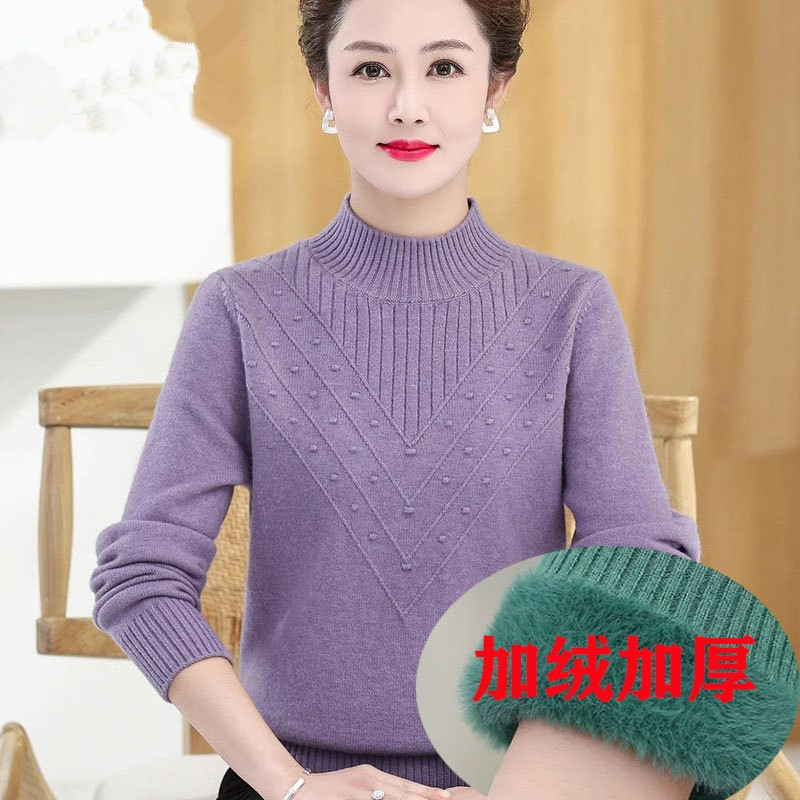 中年のお母さんのセーターにベルベットの厚いシャツの冬服40歳50歳の中高年女性秋冬の新しい保温上着