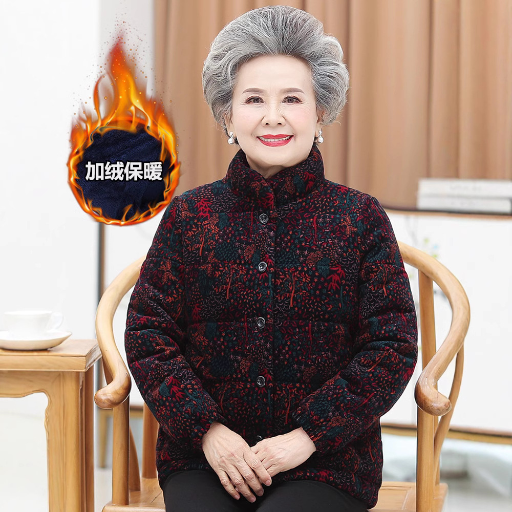 おばあちゃんとベルベットの保温綿服70歳80人の秋冬服の女性の綿入れの上着のお母さんの奥さんは綿服を厚くした