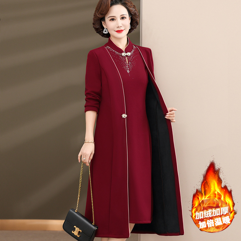 2024新型中年女装洋気馬甲コート母装カシミヤワンピース秋冬セット底付きスカート