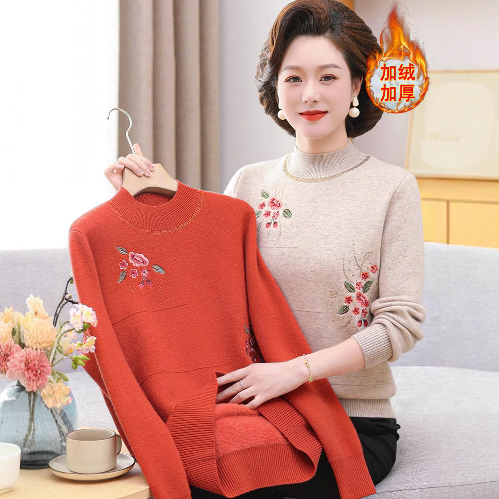 中年のお母さんのセーターにベルベットの厚いシャツの冬服40歳50歳の中高年女性秋冬の新しい保温上着