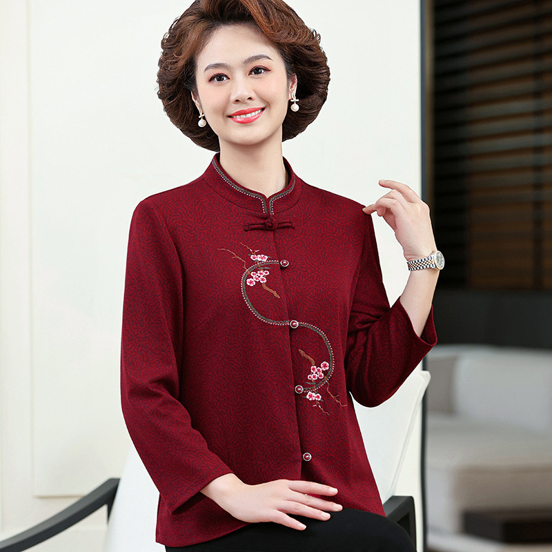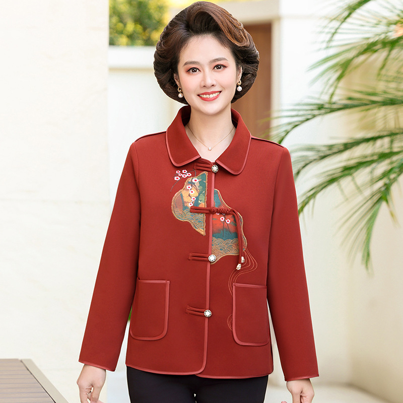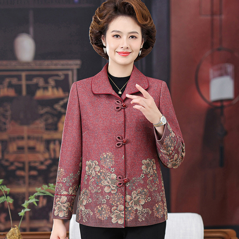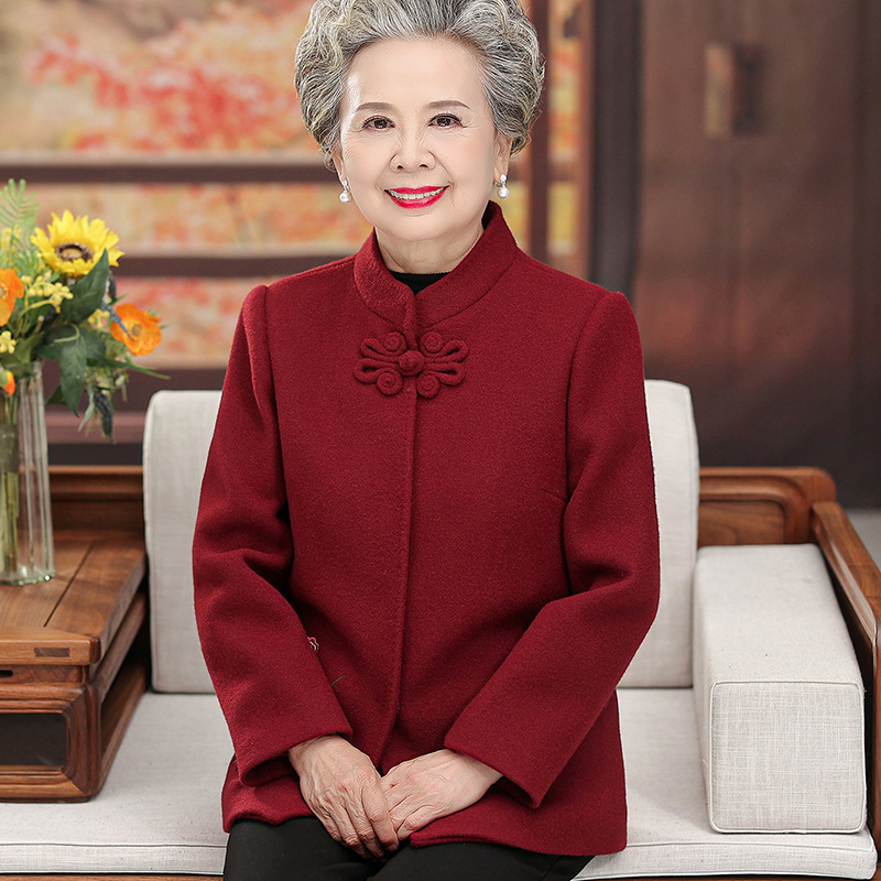 おばあさんの春と秋の唐服のコートの高齢者の春の服の女性の結婚式のスーツのおばあさんの毛は老人のお母さんの上着の新しいです。
