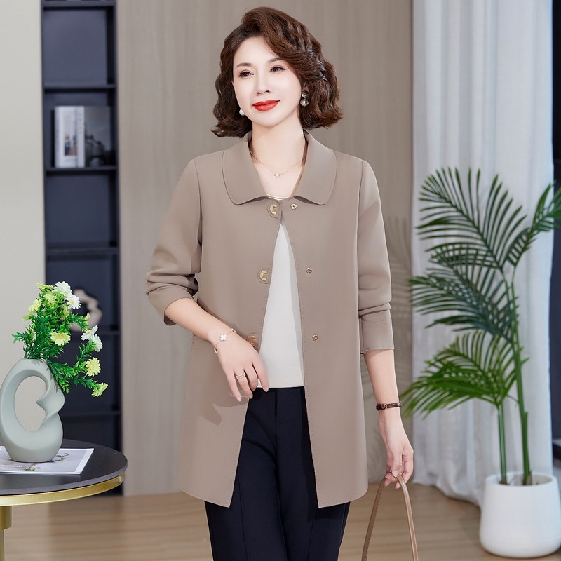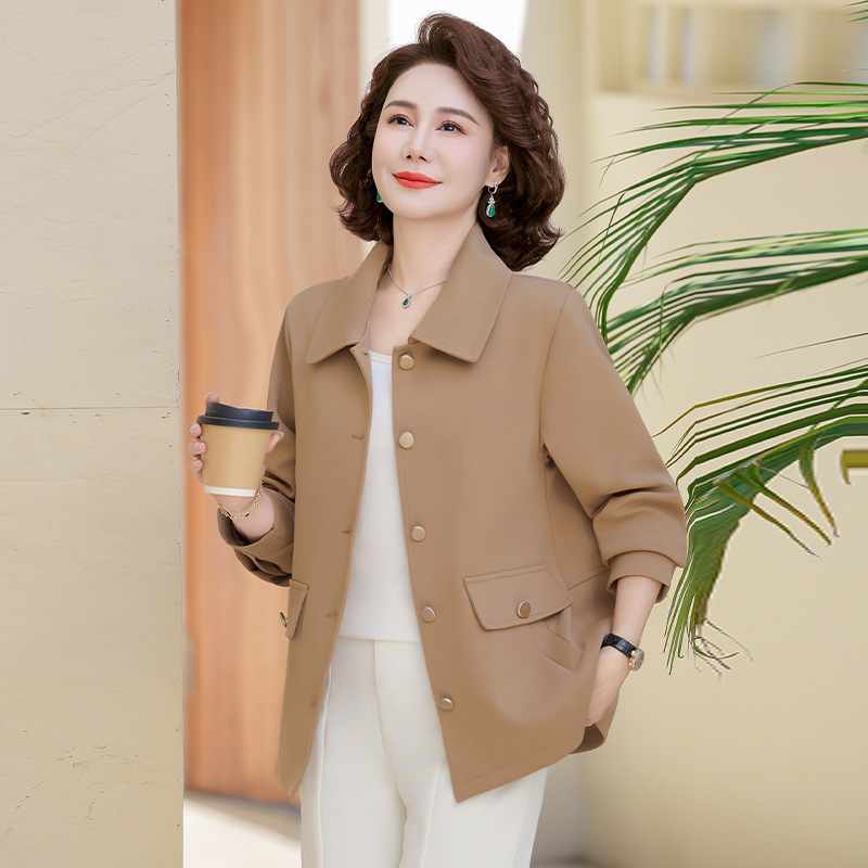 2025年の春のお母さんの女性の襟のジャケットの新型の中高年の女性のファッションの洋風のジャケットのコート