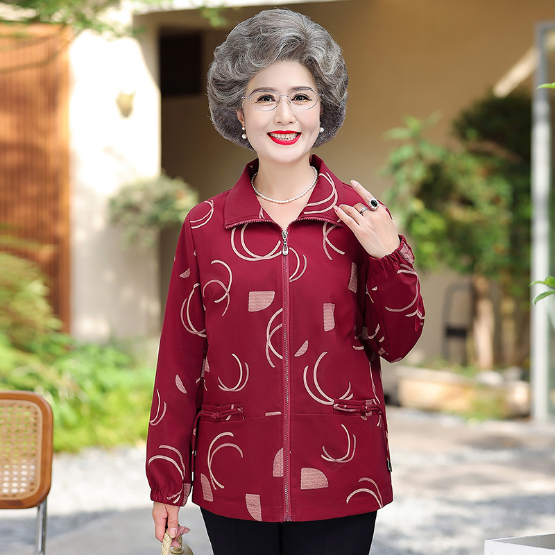 2025年春秋新作中高年のおばあさんの洋気のコートの女性のお母さんは60歳の70国風のジャケットを着ます。