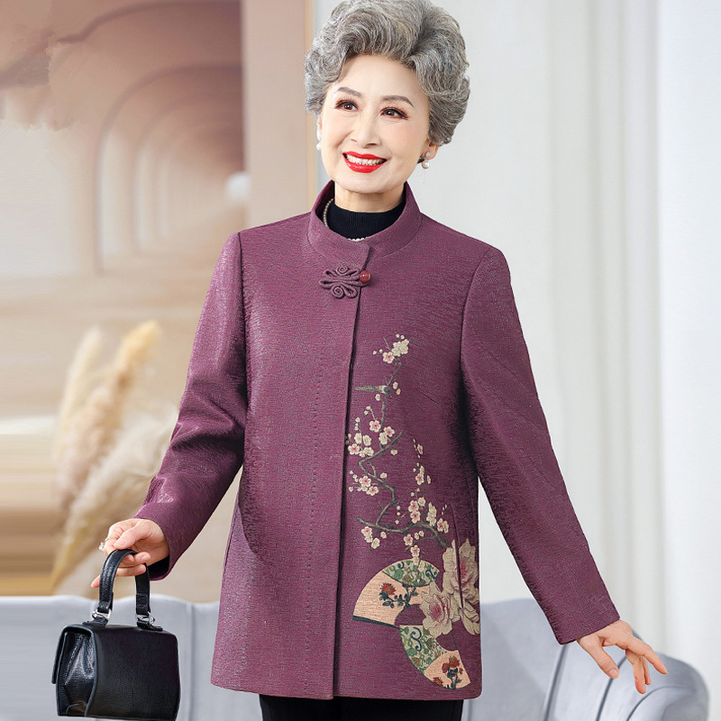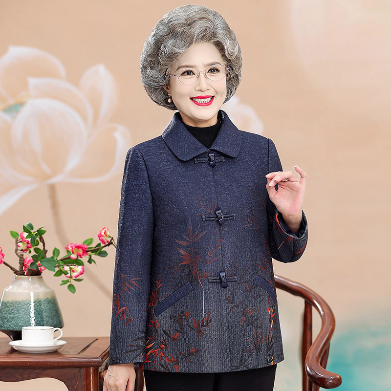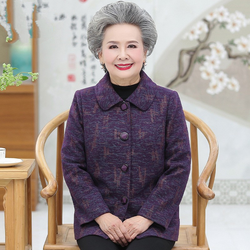 中高年の秋服の女性のおばあさんと春のコートの新型70歳のお母さんのファッションのラシャの上着のおばあさんの服