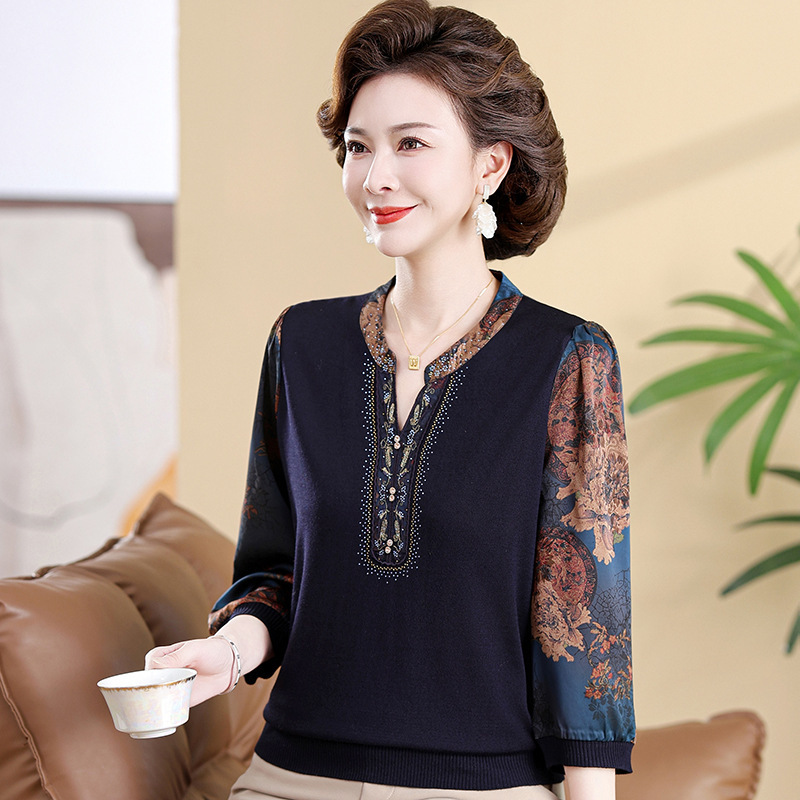 お母さんの春の服のtシャツの七分袖の小さいシャツの洋風の気高い中高年の女性の母親の服の春と秋の気質の上着