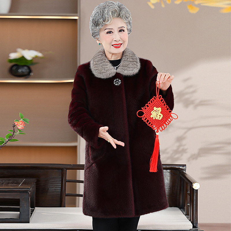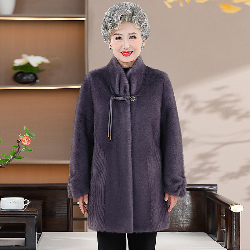 お年寄りの冬服の女性のお母さんは毛皮のミンクの毛のコートをまねて、厚いおばあさんの新型のおばあさんの保温のコートをプラスします。