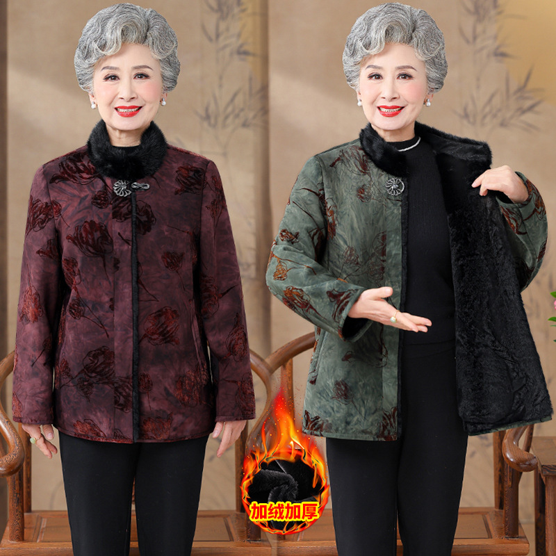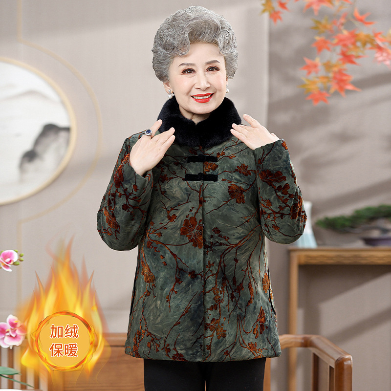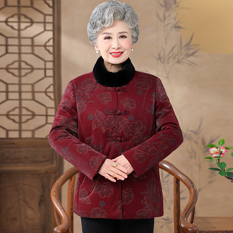 おばあさんの冬服のコートの女性の中高年の綿入れの上着とベルベットの厚いお母さんの綿入れの老人のおばあさんの保温綿服