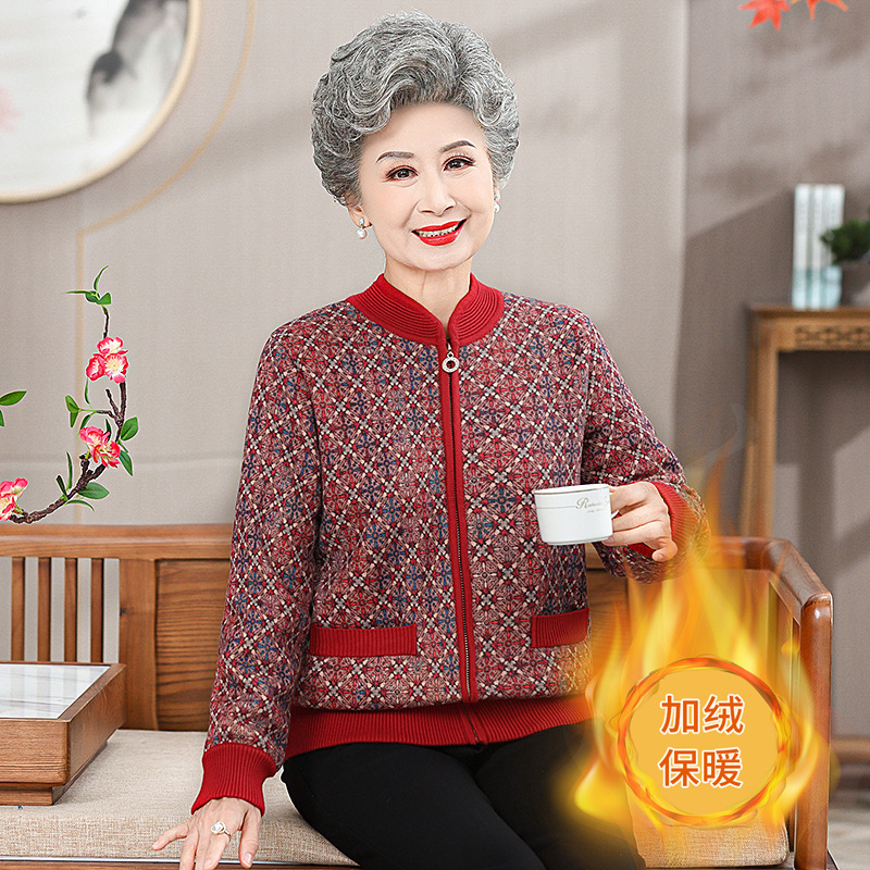 秋冬の新型福気のおばあさんは旗のガウンの襟とベルベットの厚いコートの中で高齢者のゆったりしたカーディガンのおばあさんのセーターを詰めます。
