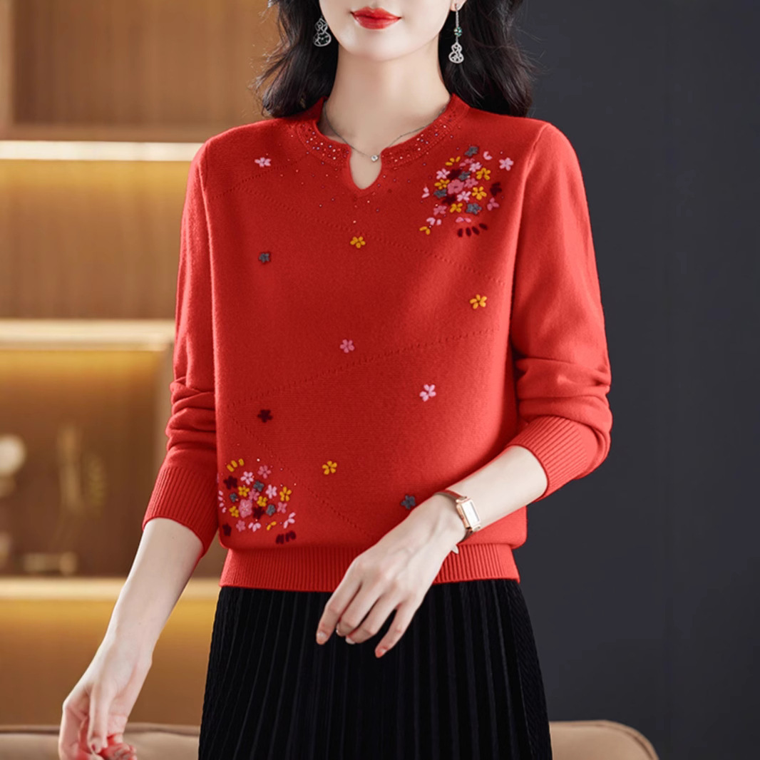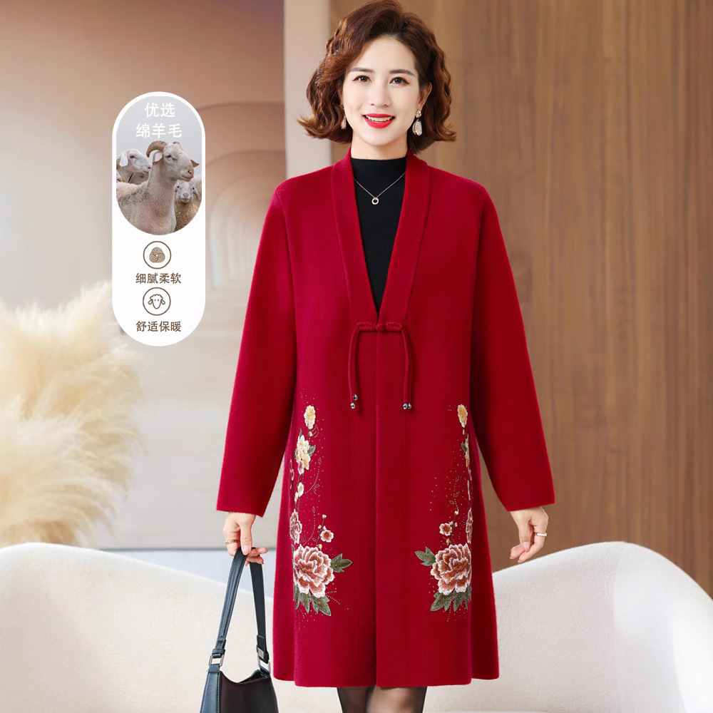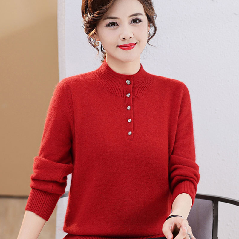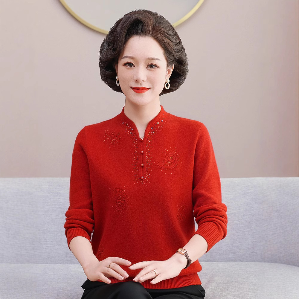 ママセーター100% 純ウール女性中年セーター本命年服中高年秋冬服シャツ