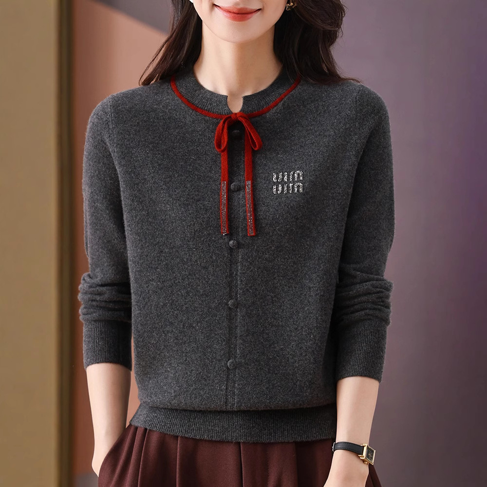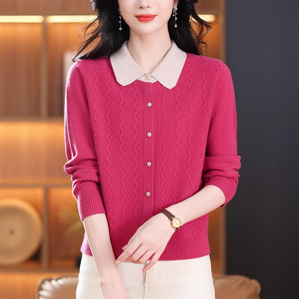 100% 純粋なウールのカーディガンの女性の中年の人の秋冬服のセーターの底のシャツの中で老年のお母さんのタイプはカーディガンをめくります。