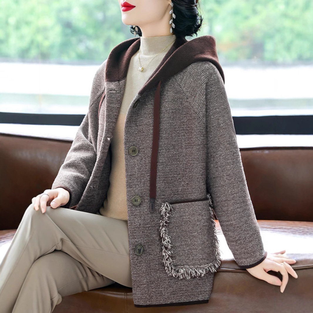 太ったお母さんのカジュアルなセーターのコート2024の新型の中高年の婦人服の帽子のニットのジャケットのカーディガンの春と秋の上着