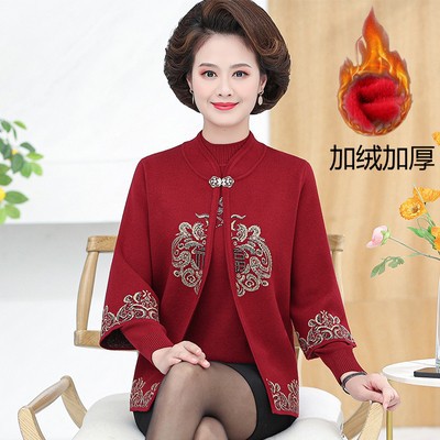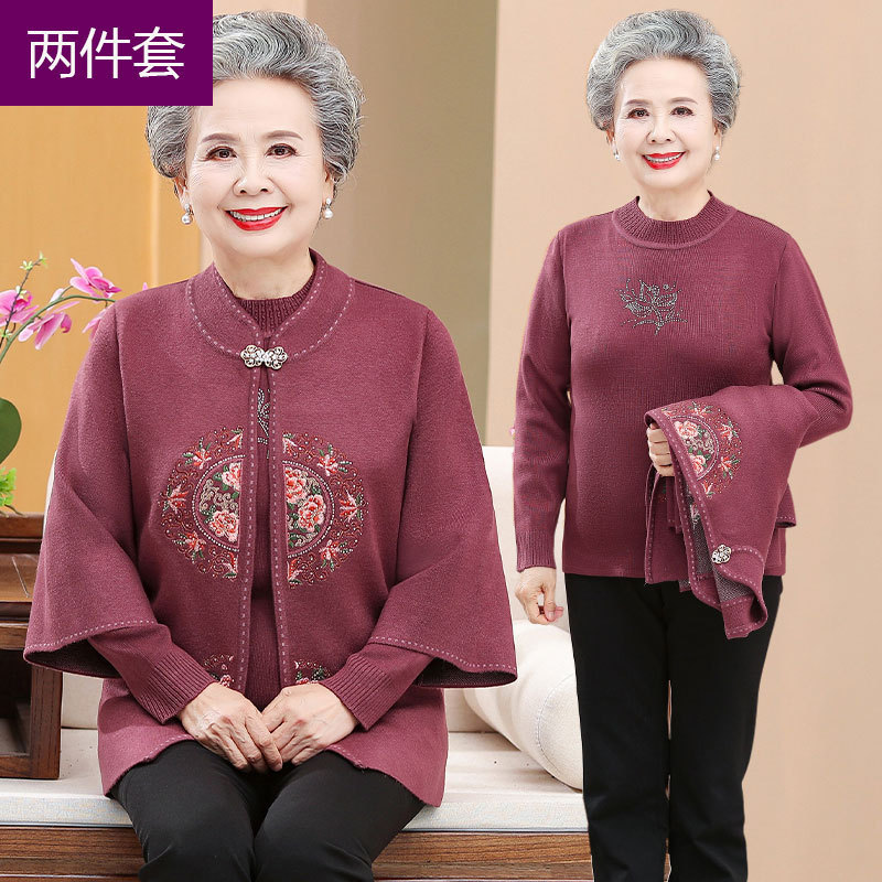 お母さんの秋服のニット二点セットのおばあさんのセーターのカーディガンは服の中で高齢者の春秋女性のコートを刺繍します。