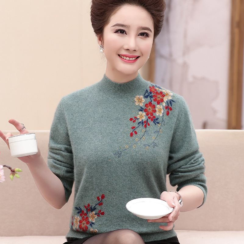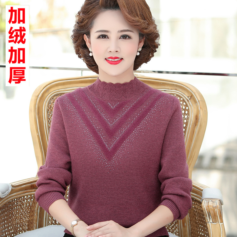 半高襟のお母さんの100% のカシミヤのシャツの冬服の中高年のセーターの女性のゆったりしている大きいサイズの高齢者の冬の底のシャツ