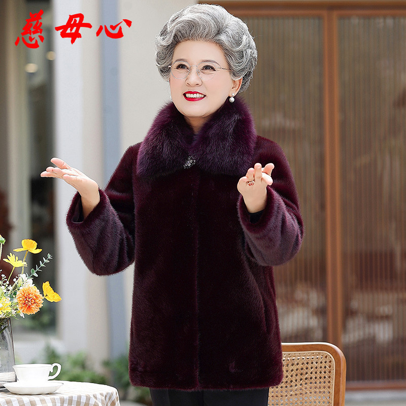 お年寄りの冬服の女性のミンクの毛皮のコートのおばあさんの毛皮の老人の服のお母さんのミンクの毛のコート