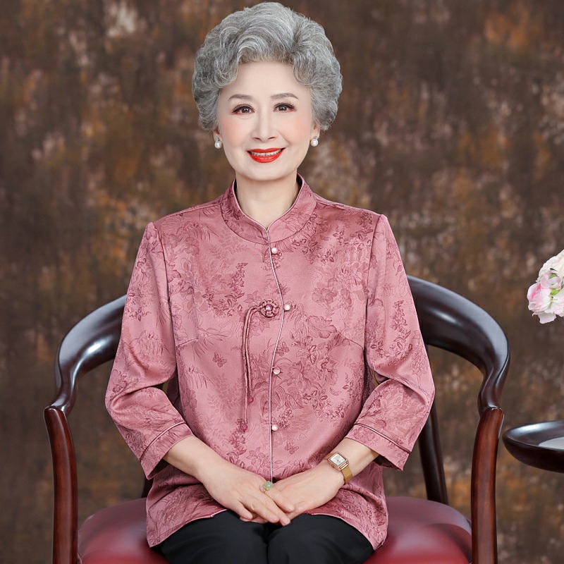 おばあちゃんの春服2025新作ミッドスリーブ服、中高年女性のお母さん向けのファッショナブルな春夏新作おばさんシャツ