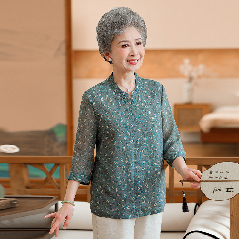 中高年女性向けシャツ、ママ夏服、七分袖スーツ、60歳、70歳のおばあちゃん春服