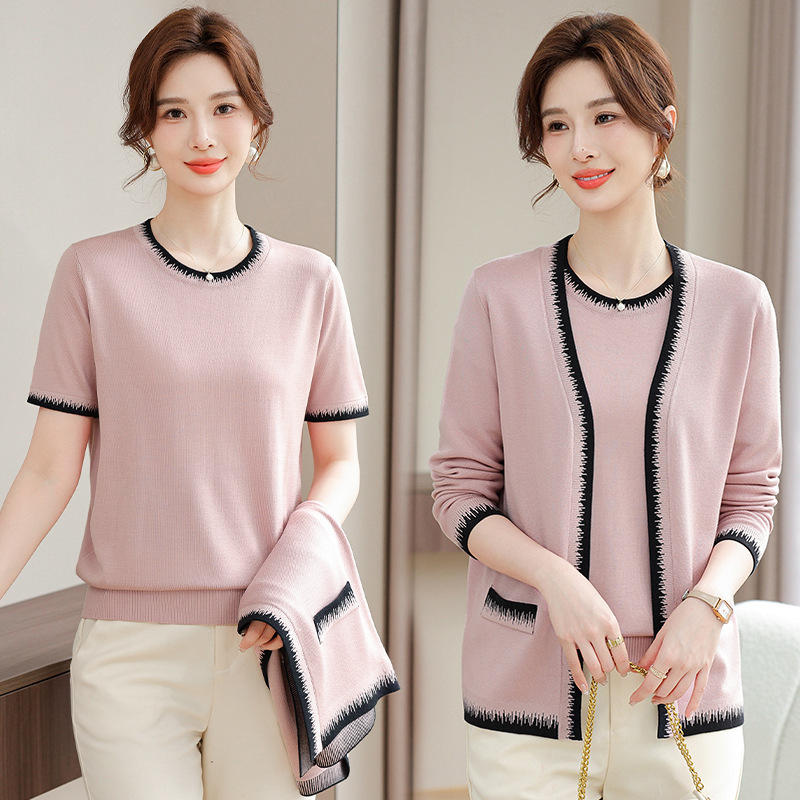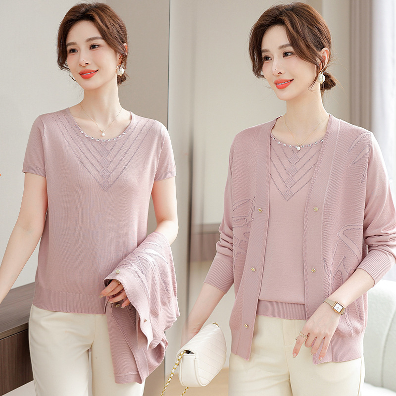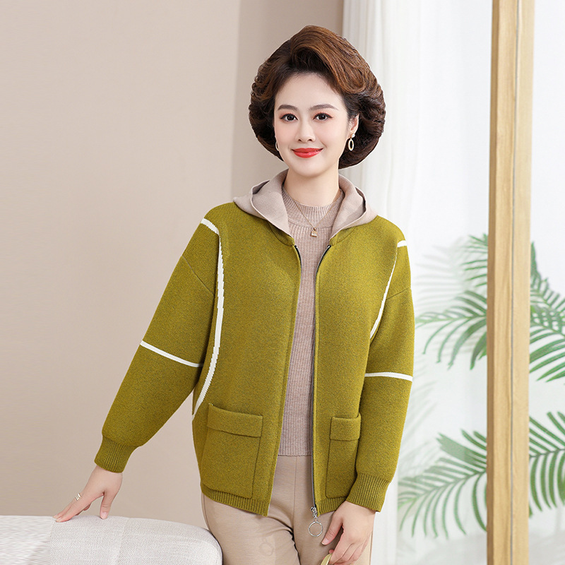 ファッション中年母洋気ニット新純色2点セット2025春秋中高年女性気質上着
