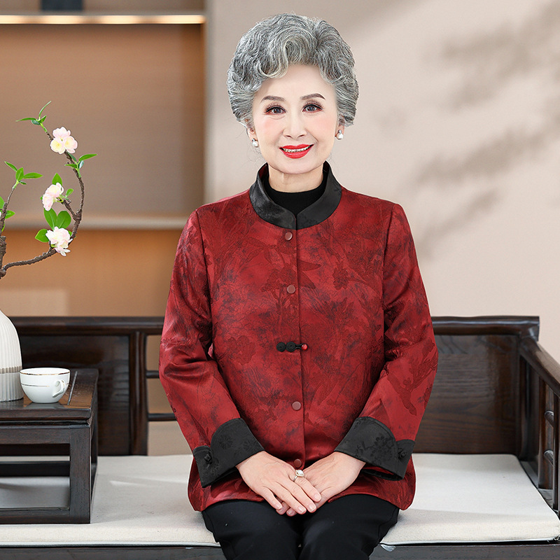 お年寄りのお母さんの秋の服装の国の風の上着の60-70-80歳のおばあさんの春秋唐の服装のコートのお祝いのおばあさんの服