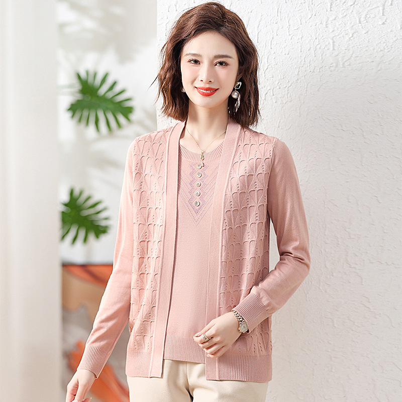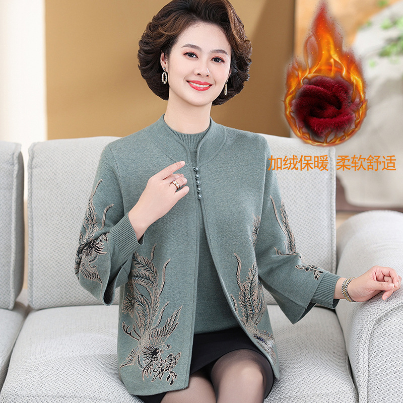 2024新型ママ秋装新中国式ニットセーターコート中高年女性国風春秋上着2点セット