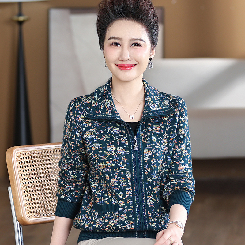 中高年のお母さんは秋冬の2つのセットの上着を着ます。