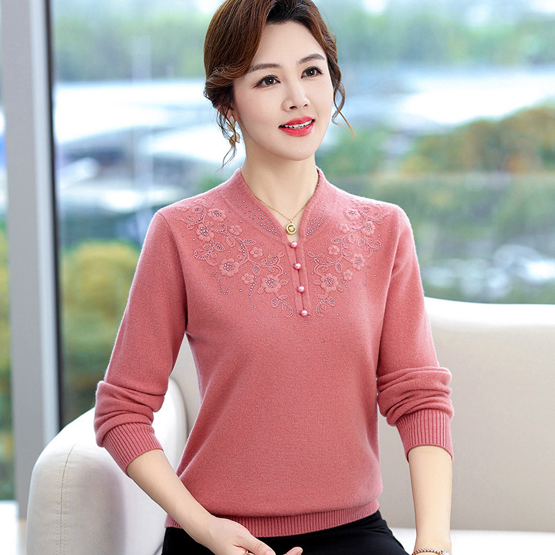 お母さんのモデルの100% 純ウールの上着の中年の女性の春の服の中でセーターの中で高齢者のしゅうとめの春と秋の底のシャツを着ます。