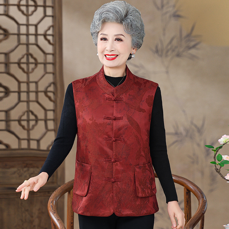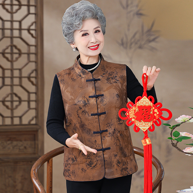 中高年の馬甲のコートのおばあさんと春秋のお母さんの唐服のベストの婦人服の大きいサイズの唐服は外に老人の肩を着ます。
