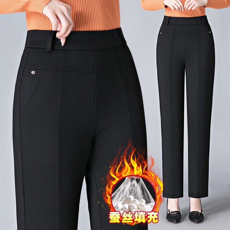 綿のズボンの女性の冬の中高年のお母さんのズボンとベルベットの厚い外は保温のシルクのズボンの東北の高い腰の膝のズボンを着ます。