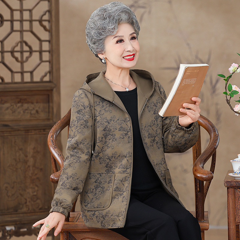 お母さんの秋の服の2024新型の帽子のジャケットの上着の中で老年の婦人服のおばあさんの大きいサイズの風衣のコート
