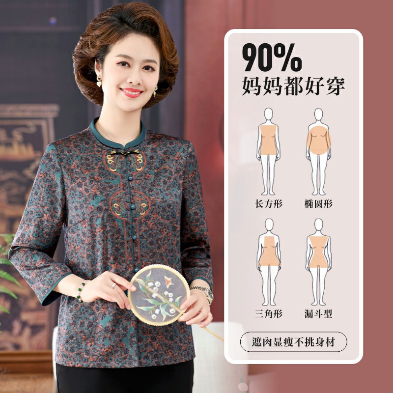 お年寄りの春の服の女性のおばあさんのお祝いの披露宴の新型のお母さんの唐の服のおばあさんの春秋の服の誕生日の誕生日の誕生日の服
