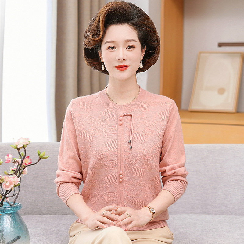 2024年の新型のお母さんは洋風の国の風を着てニットの中高年の女性のセーターの春秋ジャカードの上で服を持ちます。