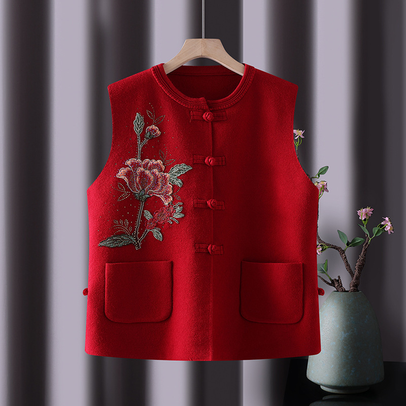 喜姑の刺繍のニットの肩のベストの結婚披露宴の本命の年のおばあさんはベストのカーディガンを詰めて馬の挟みを掛けます。
